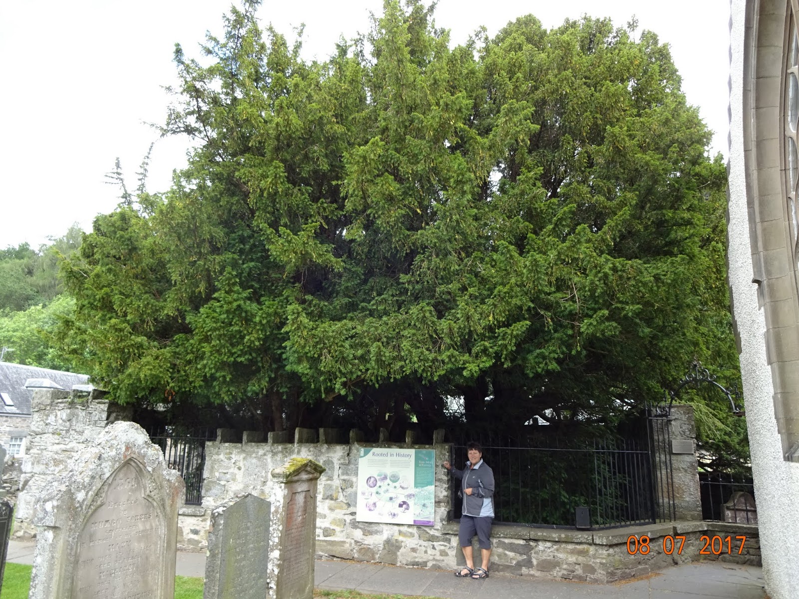 Aber wir erreichten das erste Etappenziel in Fortingall und konnten eine auf 3000-5000 Jahre geschätzte Eibe bestaunen.