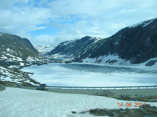 Über steile Schotterserpentinen (Maut 100 NOK) erreichen wir
