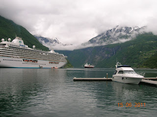 so dass das Schiff mit einer Stunde Verspätung Geiranger