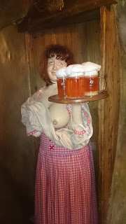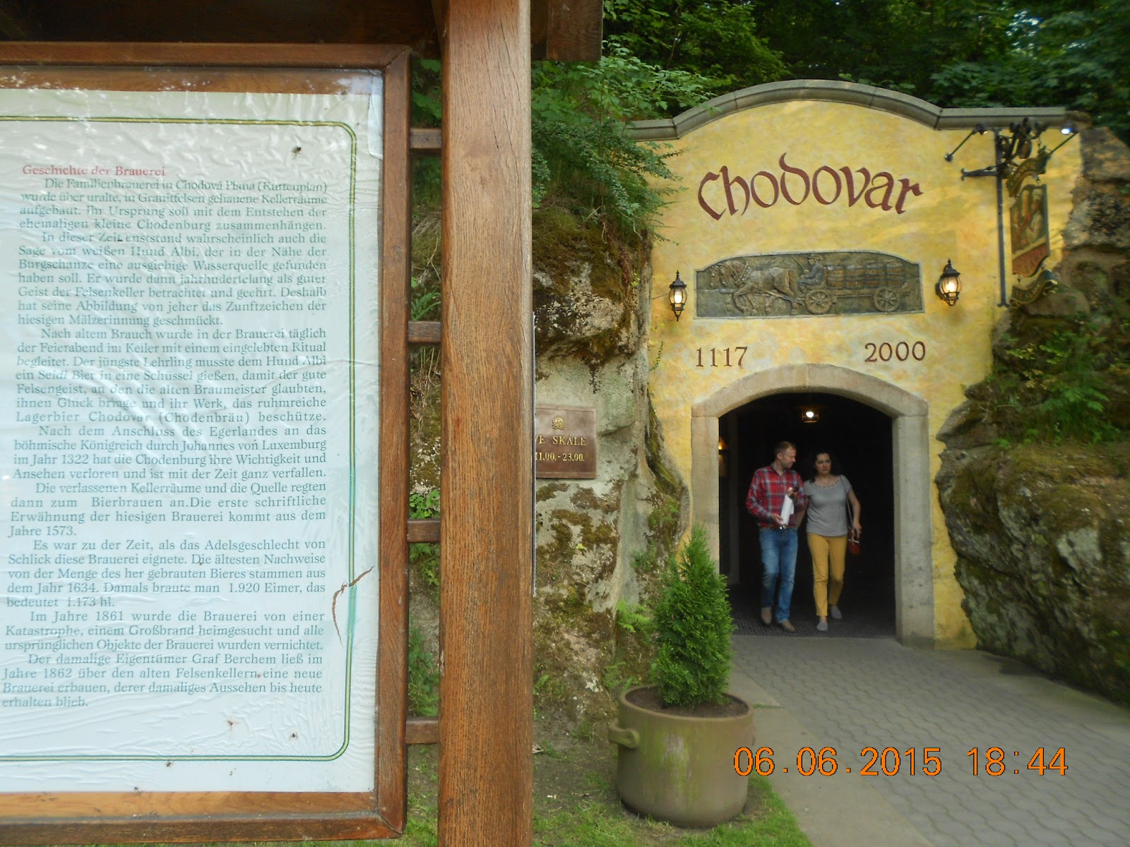 Chodovar-Brauereikomplex mit Hotel und Brauereigaststätte. Wir parken vor den Felsengewölben der Gaststätte und testen die Biersorten. Danach schläft es