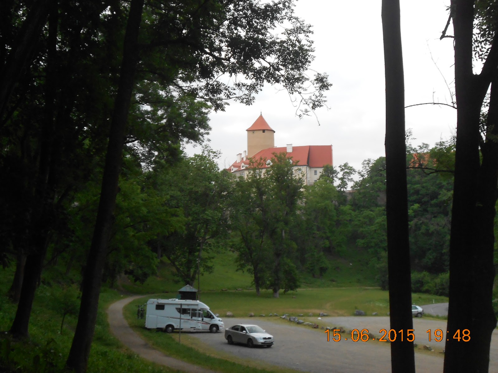 Für den Abend sind die Parkplätze an der Burg Perstejn ausgewählt. Aber wir hben Pech. Einer ist geschlossen, bei dem anderen, neu angelegten, öffnen