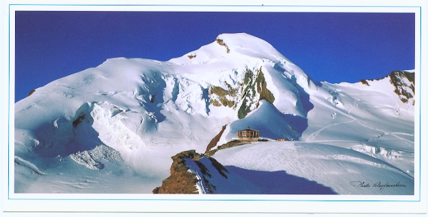 Anfang Juli 1999 ist es soweit: Eine Seilschaft aus dem Dunstkreis der Familie wird gebildet. Wir, das sind Katharina, Björn, Michael und Jürgen, machen uns am Freitag mittag auf den Weg und erreichen am Abend das Basislager in ca. 3100 m Höhe, die Britannia-Hütte. (Nach einer langen und beschwerlichen Seilbahnfahrt sowie einem einstündigen und leichten Fußmarsch).