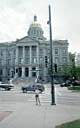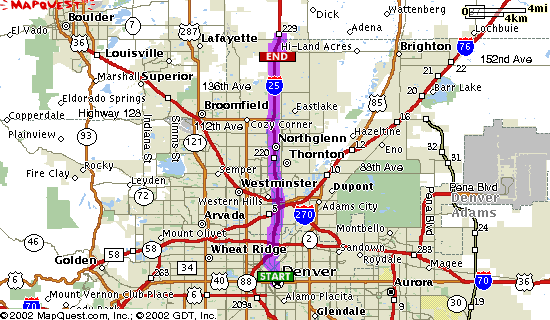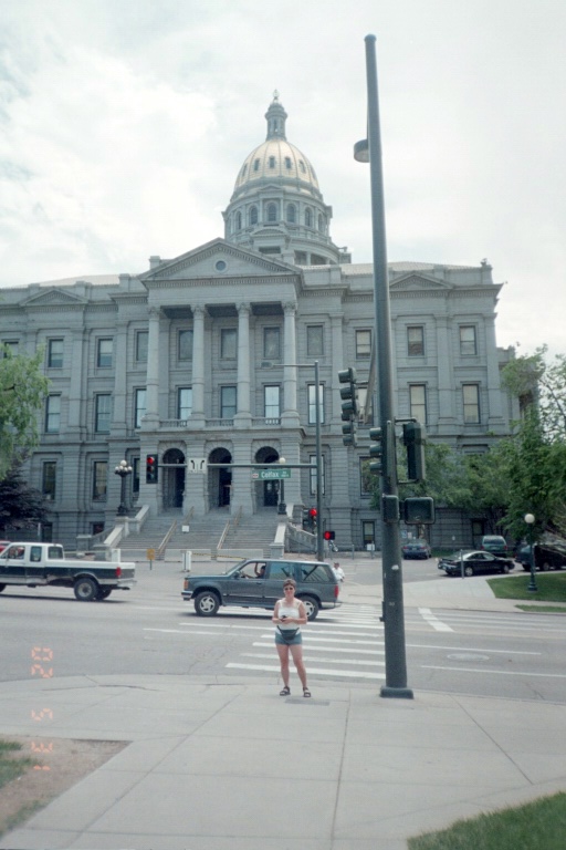 Zufälligerweise sind wir auch unmittelbar an einer Haupteinfallstrasse nach Denver, auf der man ohne eine Abbiegung das Stadtzentrum erreicht. Darauf fahren wir, bis wir meinen, es wäre an der Zeit, das Auto abzustellen. Ausserhalb von downtown ist das auch kein Problem, wir können sogar unter einem Baum parken. Vorsichtshalber werfen wir aber noch einige intensive Blicke in die Umgebung, es sieht aber alles recht normal aus.