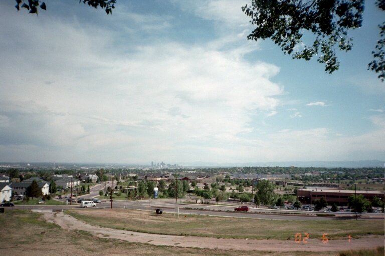 Nun wird es langsam Zeit, in Richtung der vorgebuchten cabin auf einem Campingplatz nördlich von Denver aufzubrechen. Mittlerweise ist der abendliche Berufsverkehr in vollem Gange und wir mitten drin. Wir erreichen nördlich des Zoo die I70W und quälen uns dann auf die I25N. Etwa 10 Meilen weiter nördlich nutzen wir den etwas nachlassenden Verkehr, um die Autobahn zu verlassen. Wir müssen uns erst mal orientieren, die Aufschriften auf den Exit-Tafeln entsprachen nicht in jeden Fall unseren Erwartungen. Oft sind nur die Vorstädte erschließende Parkways angeschrieben, die findet man aber auf den normalen Karten nicht. Was wir finden, ist ein schöner Aussichtspunkt auf Denver und wir können nach dem hitzigen Stadttag mal etwas durchatmen.