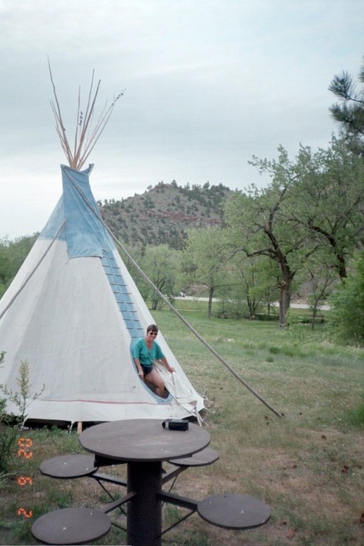 50 Meilen nördlich von Lusk zweigen wir auf die US18E ab und erreichen den Staat South Dakota. Auf insgesamt 70 Meilen gibt es keine Ortschaft, natürlich gibt es hier auch kein Welcome Center. Immerhin erreichen wir hier das "Buffalo Gap National Grassland", die typische Prärie, jetzt schon deutlich grüner. Kurze Zeit später sind wir dann schon in den Black Hills mit typischem Mittelgebirgscharakter und erreichen das Ziel dieses Tages: Hot Springs. Hier haben wir auf Allens Ranch CG ein Sioux-Tipi gebucht. Joe Allen ist gerade mit den Vorbereitungen zum BBQ beschäftigt, begrüßt uns herzlich und bestätigt unsere Reservierung, die Formalitäten einschließlich Bezahlung müssen wir aber im Zuge der self registration erledigen.