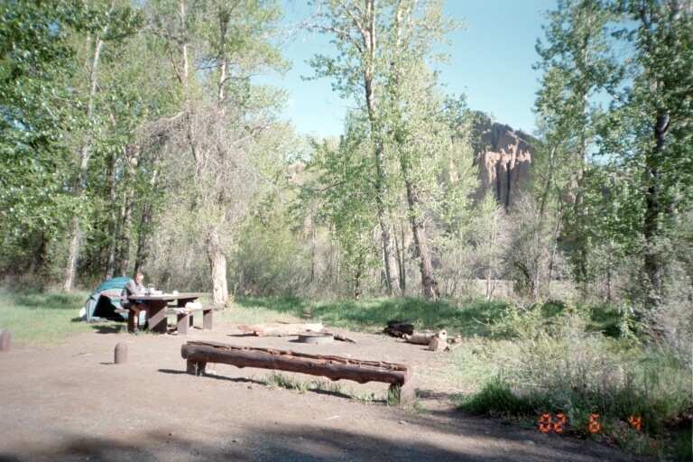 Holz gesammelt, das Feuer entzündet. Ein idyllischer Abend, die Sterne funkeln, der Shoshone River rauscht kräftig am Zelt vorbei, wir sind auch fast allein auf dem Platz. Und das für $5 die Nacht.