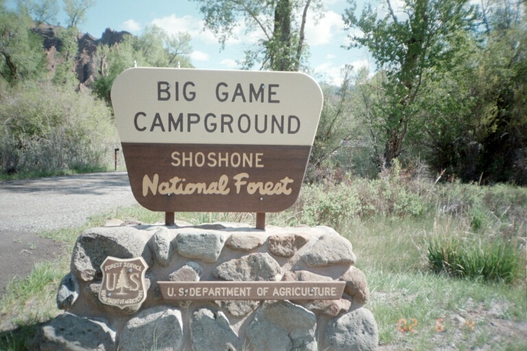 Wir hoffen auf die in der Karte verzeichneten CGs des Shoshone NF, zunächst erreichen wir aber bear country. Große Warnschilder an der Straße, dass Grizzlybären unsere Lebensmittelvorräte plündern wollen. Ganz ohne Wirkung bleiben die Schilder nicht, wir erkundigen uns beim glücklicherweise anwesenden CG host auf dem Big Game CG