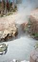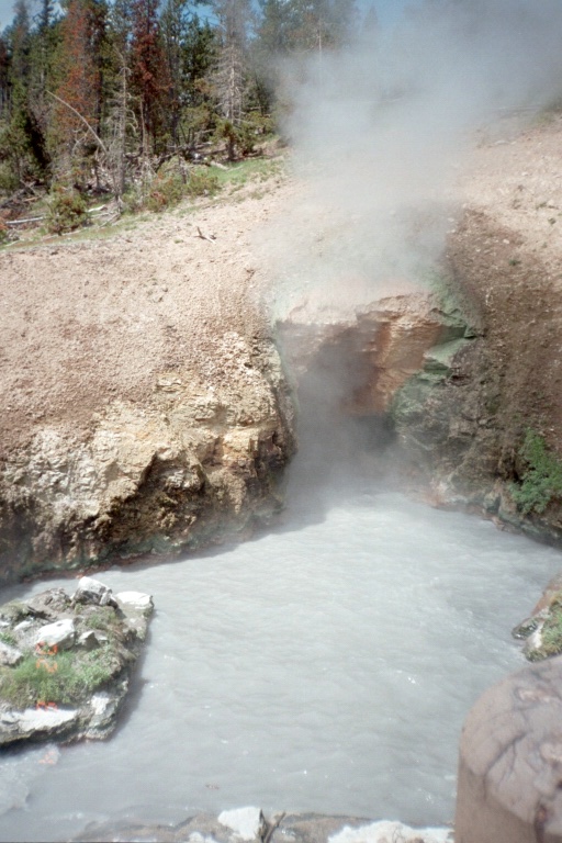 Letzter Tagesordnungspunkt ist das Norris Geyser Basin, eine Versammlung von mehreren kleineren, unregelmäßig ausbrechenden Geysiren. Als wir das Becken erreichen, bricht einer zweimal hintereinander in recht imposanter Weise aus. Man kommen ihm anschließend auch recht nahe, aber das hat ihn wohl so verschreckt, dass er während unserer Anwesenheit nicht mehr wollte.