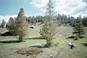 Auf der anderen Seite des Passes sehen wir zum erstenmal große Flächen, wo 1995 die Waldbrände gewütet haben. Es stimmt zwar, dass die Natur sich am Boden und im Unterholz schon wieder regeneriert hat, trotzdem bieten die vielen noch stehenden kahlen und schwarzen Bäume keinen schönen Anblick.