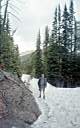 Zunächst fahren wir zum Dunraven Pass und testen mal einen Wanderweg zum Mt. Washburn, einem der höchsten Berge auf dem Parkgelände (10243 ft.) Nach der halben Strecke kehren wir aber wieder um, die Schneefelder werden immer ausgedehnter und es wird zum Laufen zu schwierig.