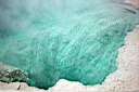 Als Zugabe spuckt kurz danach noch ein benachbarter Geysir. Es kommt zwar nicht so hoch, aber er kann länger und es ist auch irgendwie mehr Druck dahinter. Ausser diesen beiden gibt es im Park noch ca. 10 bis 15 Geysire mit relativ konstanten und gut dokumentierten Perioden und man kann sicher mehrere Tage damit verbringen, sie alle zum richtigen Zeitpunkt aufzusuchen, zu erleben und miteinander zu vergleichen.