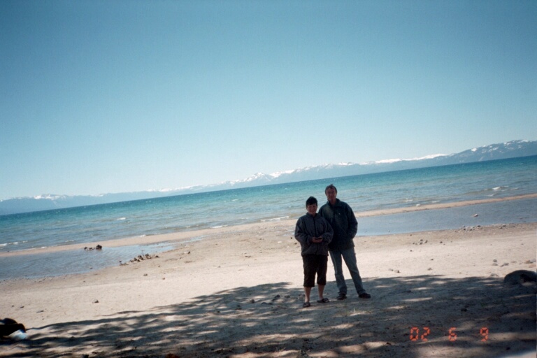 Irgenwann haben die 250 Ödmeilen aber auch mal ein Ende und schlagartig mit Erreichen der Doppelstadt Sparks-Reno nimmt der Verkehr zu. Wir haben hier ber keinerlei Ambitionen, außer den Abzweig zum US395S und dann zum NV431W zu finden. Beides gelingt und plötzlich geht es steil bergauf (aber vierspurig) in die Sierra Nevada. Wir sind natürlich nicht überrascht, schließlich haben wir uns hier in der Nähe des Mt. Rose Summit(8933 ft) einen CG ausgesucht, den wir jetzt ansteuern. Was wir allerdings nicht wussten: er ist fast vollkommen schneebedeckt und praktisch noch nicht in Betrieb. Es heisst also weiterfahren und zwar steil hinunter zum Lake Tahoe. Jetzt hat sich aber die weite Fahrt durch die Ödnis gelohnt, es gibt herrliche Blicke auf den See, der in 2000 m Höhe liegt und ringsherum von schneebedeckten Gipfeln umrahmt wird.