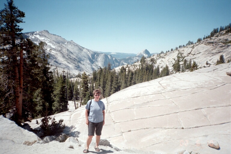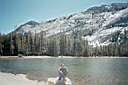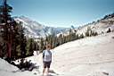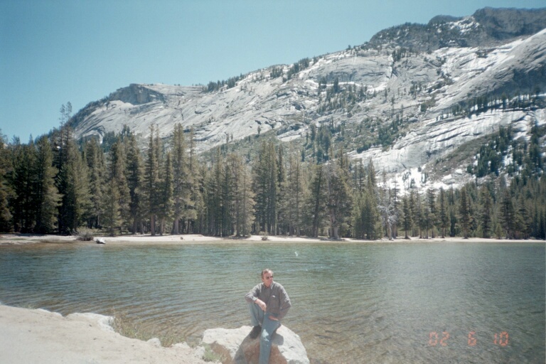 Der Plan führt uns hinter Lee Vining auf die den US120W und es geht wieder steil hinauf in die Sierra Nevada. Diese Passstraße kommt alpinen Verhältnissen nun doch schon sehr nahe, sie ist im Winter auch geschlossen. Es gibt noch einige CGs unweit der Straße, die alle recht gut belegt sind. Immerhin ist dies ein wichtiger Zugang zum Yosemite NP. Am Tioga Pass erreichen wir mit 9948 ft = 3033 m einen neuen Autohöhenrekord und gleichzeitig den Nationalpark. Hier oben geht es noch recht winterlich zu, die Campingplätze sind geschlossen. Dafür gibt es eine beeindruckende Landschaft.