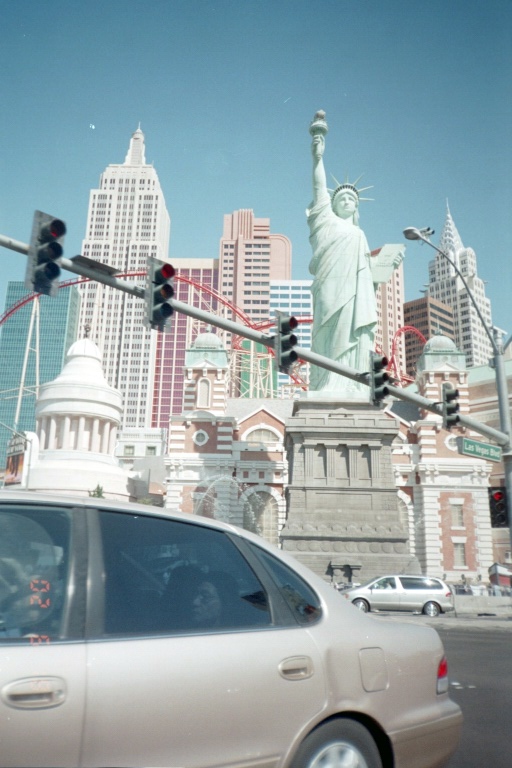 Selbst am frühen Morgen wird im Casino schon eifrig gespielt. Aber so zügig, wie wir hineingekommen sind, verlassen wir das Hotel auch wieder. Dafür fahren wir den Strip schön langsam hinunter, um auch noch einen Blick auf die Hotels zu werfen, die wir gestern zu Fuß nicht mehr erreichen konnten.