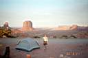 In der tiefstehenden Abendsonne sind die Felsen besonders malerisch. Dies und das Fehlen wirklicher Alternativen zu dieser doch schon recht späten Stunde veranlasst uns, entgegen ursprünglicher Absicht noch eine Wüstenübernachtung auf dem Mitten View CG zu wagen. Nach unseren Erfahrungen im Death Valley lassen wir diesmal das Überzelt erstmal weg.